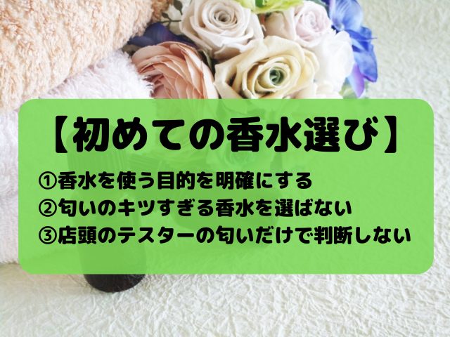 初めて香水を使う人が、”香水を選ぶ時に気をつけるべきポイント”をいくつか解説しておきます。